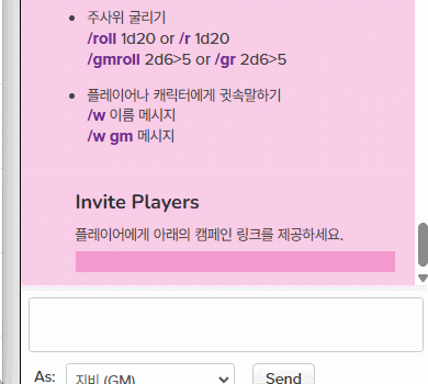 `1 다음에 글을 쓰고 `로 막으면 그 사이의 텍스트가 롤20 텍스트 서식 채팅 [텍스트](# " style=") 로 바뀌어요~